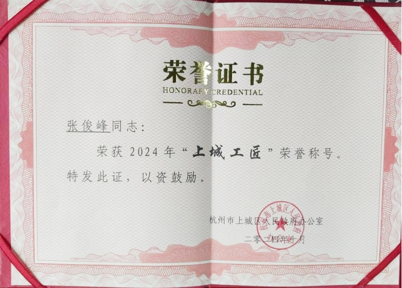 公司一直以來都注重人才培養,不斷加大對員工的培訓力度,致力于打造一支技術精湛、專業能力過硬的團隊。這次榮獲“上城工匠”稱號,不僅是對張俊峰同志個人能力的認可,更是對公司一貫培養人才、重視技藝傳承的肯定。公司一直致力于為員工提供良好的學習和發展環境,鼓勵員工不斷進步,不斷創新。張俊峰同志的成功不僅是他個人的努力,更是公司教育培訓制度的成功體現。